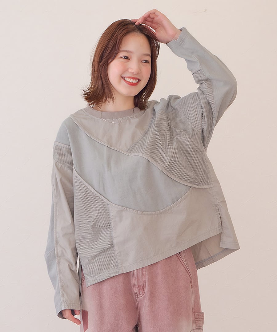 【メッシュMIXデニムプルオーバー】 ST-226958 Brand:ミリロピュール