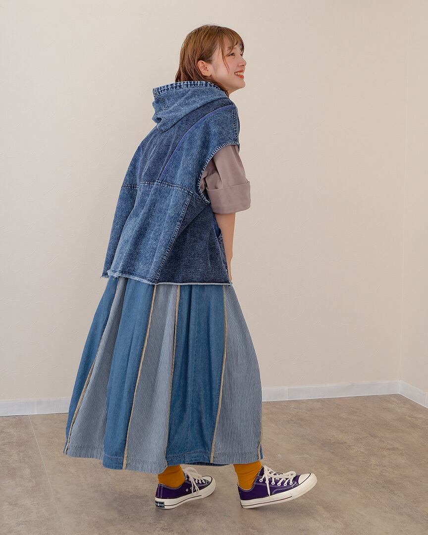 ●パイピングと切替がポイントのパラシュートデニムスカート。非常に魅力的で個性的なアイテムです。