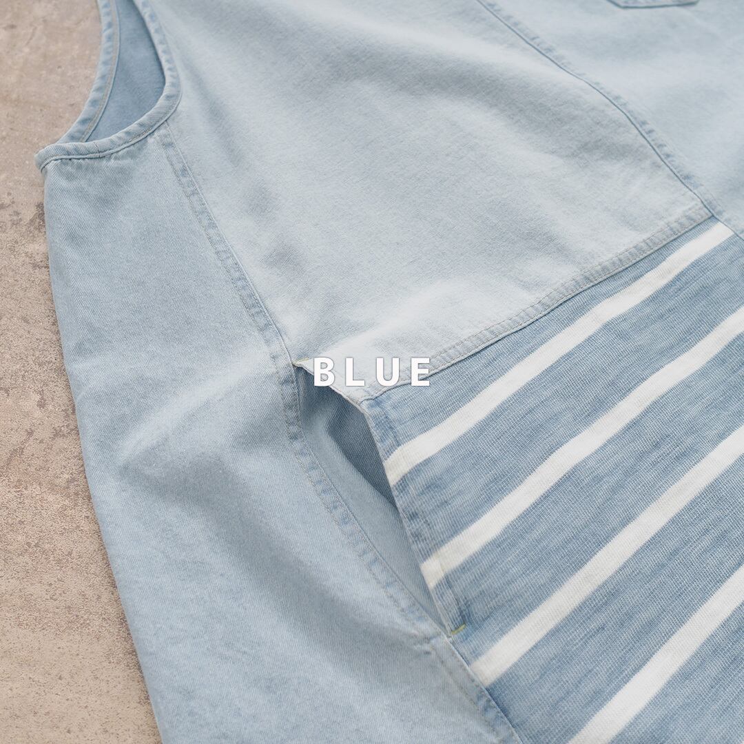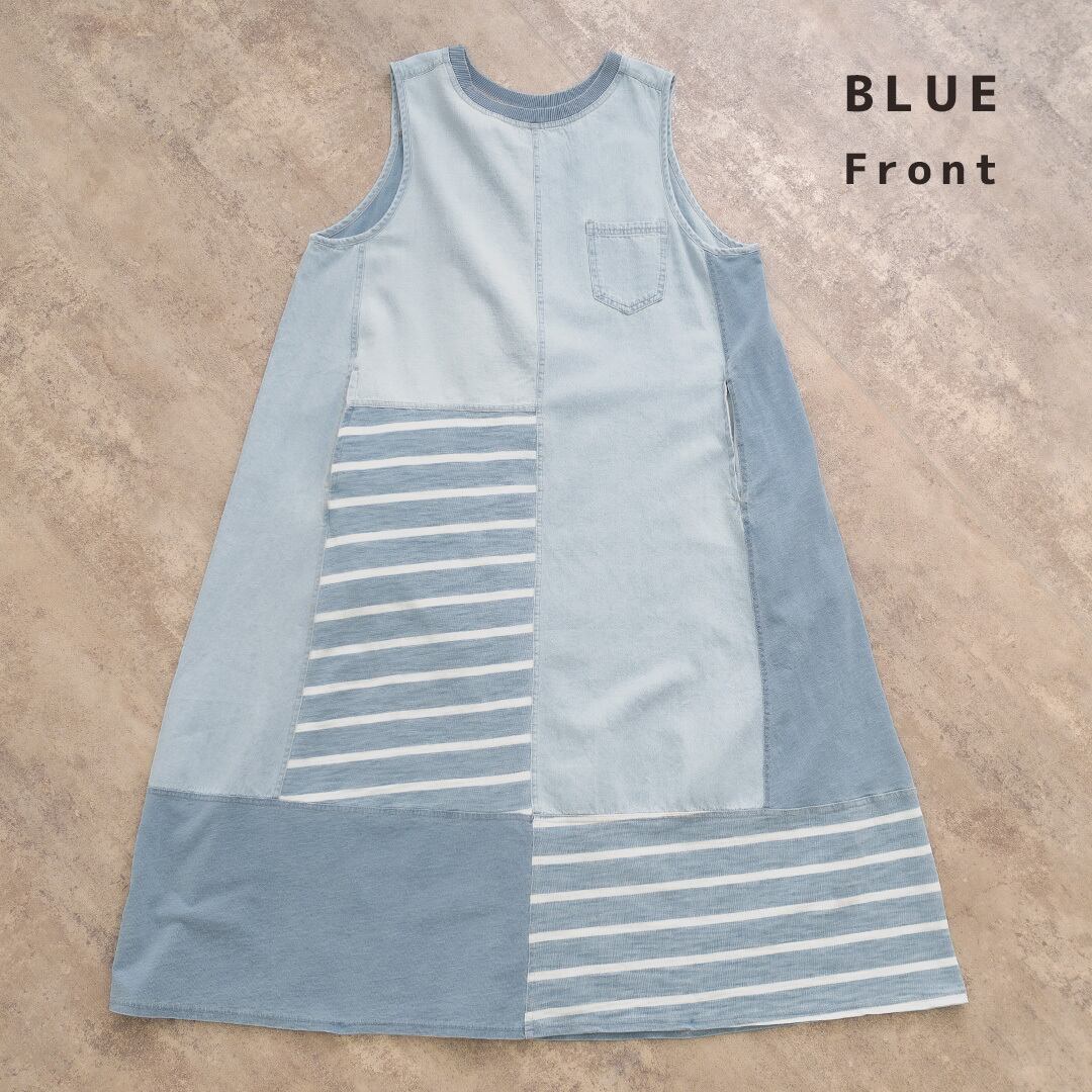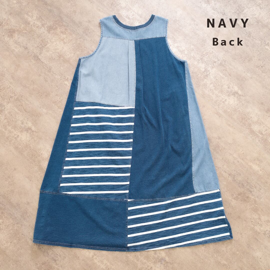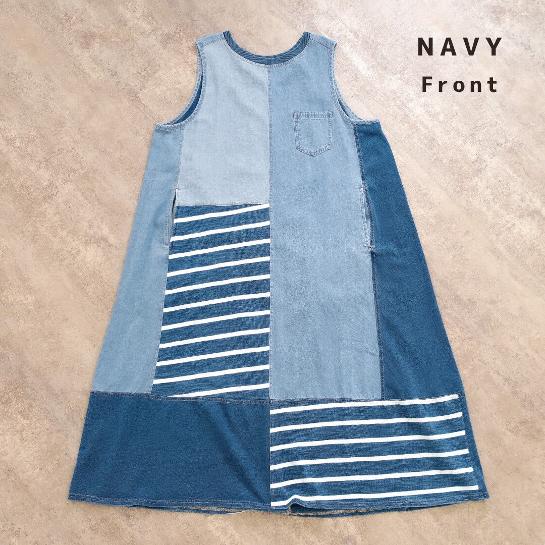 カットソー×ボーダーデニムMIX ワンピース YT-225879