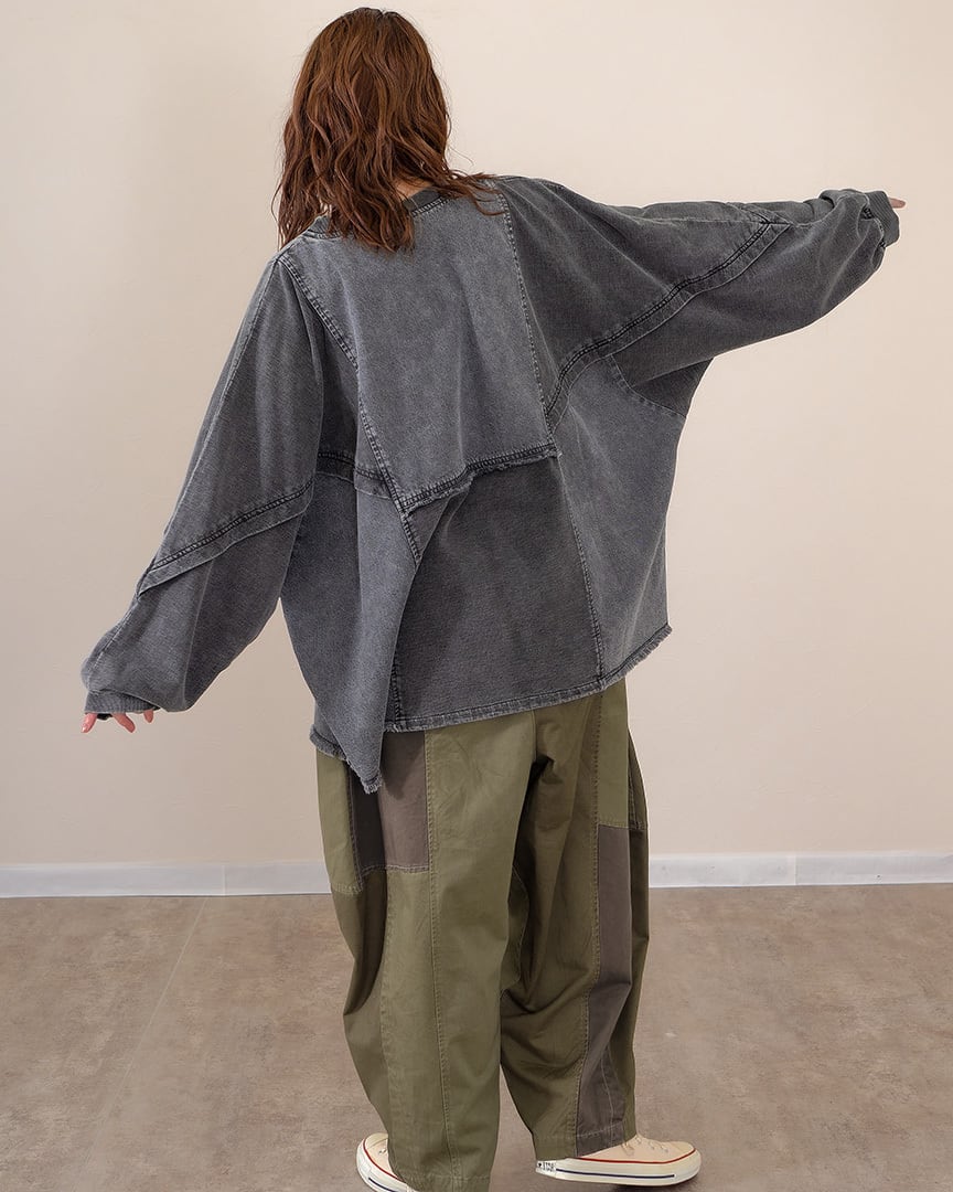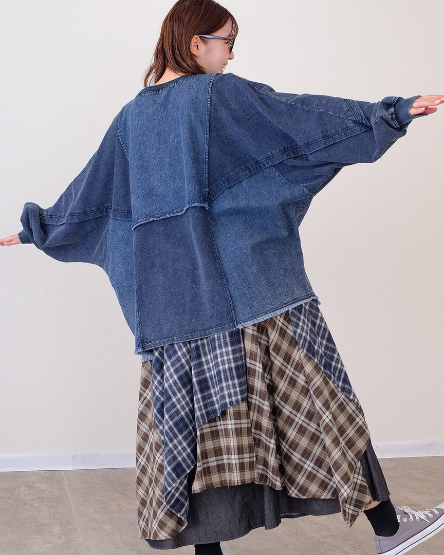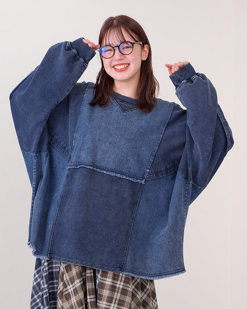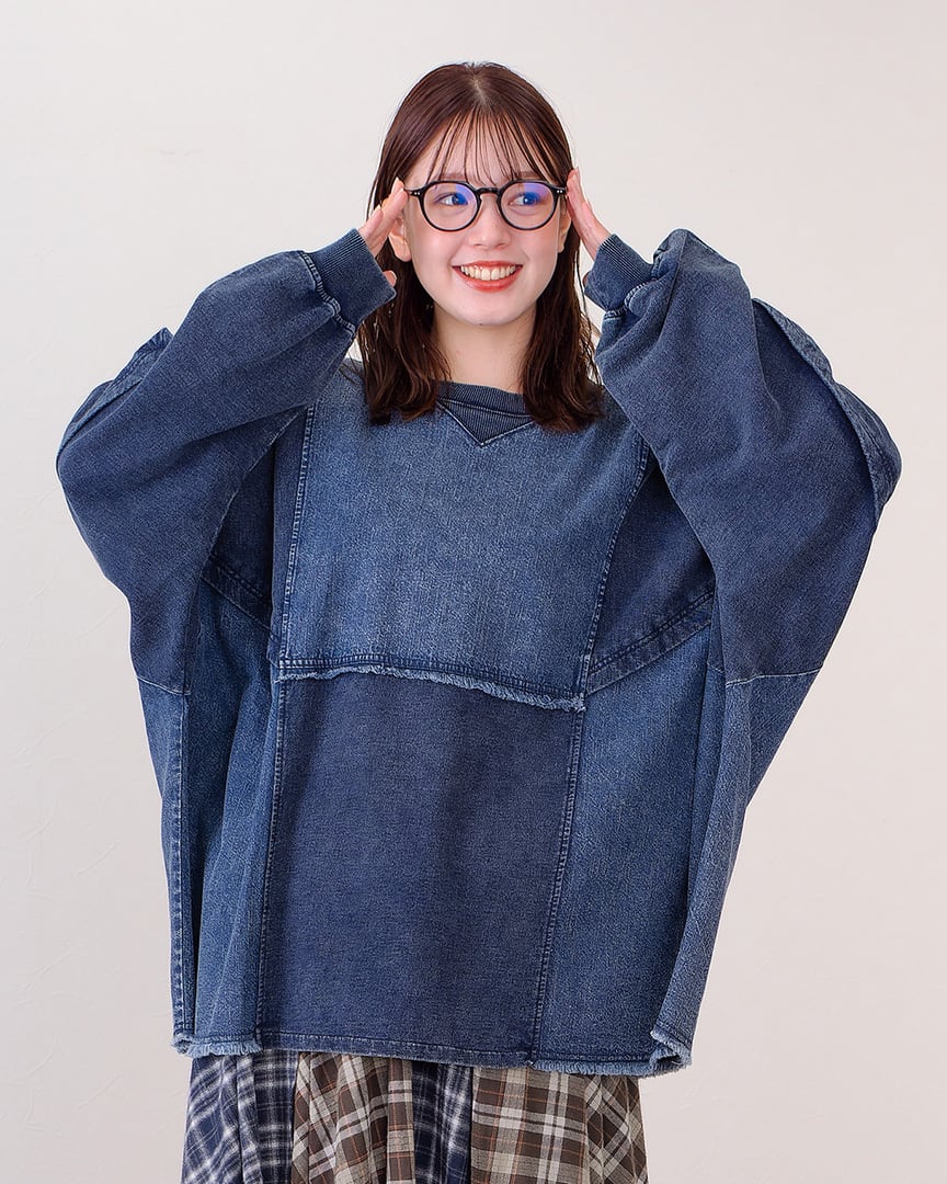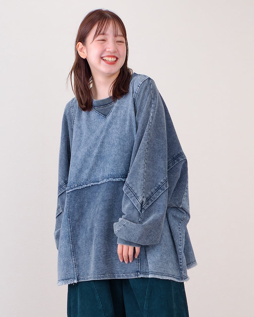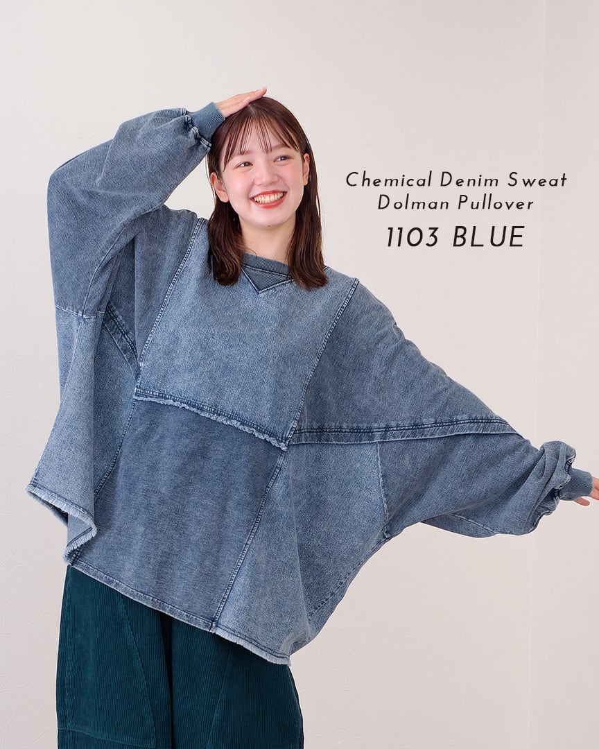 \ケミカルデニム×裏毛シリーズのドルマンスリーブTOPS/