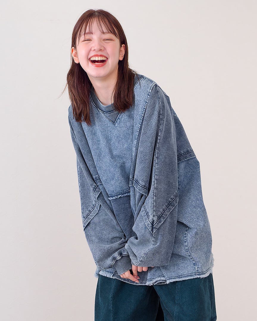 【ケミカルデニム裏毛ドルマンプルオーバー】 YT-225910 Brand:ミリロピュール