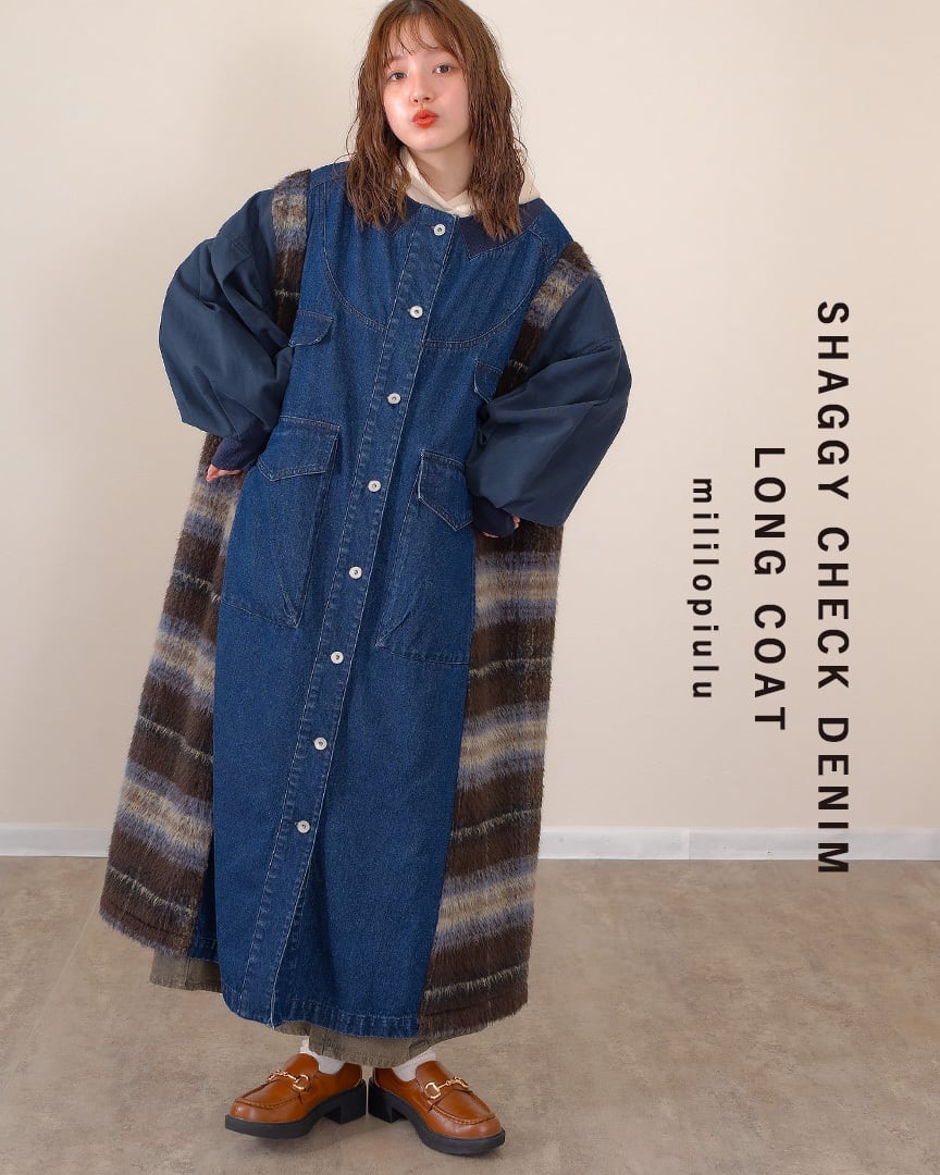 【シャギーチェックデニムロングコート】 TF-225919 Brand:ミリロピュール
