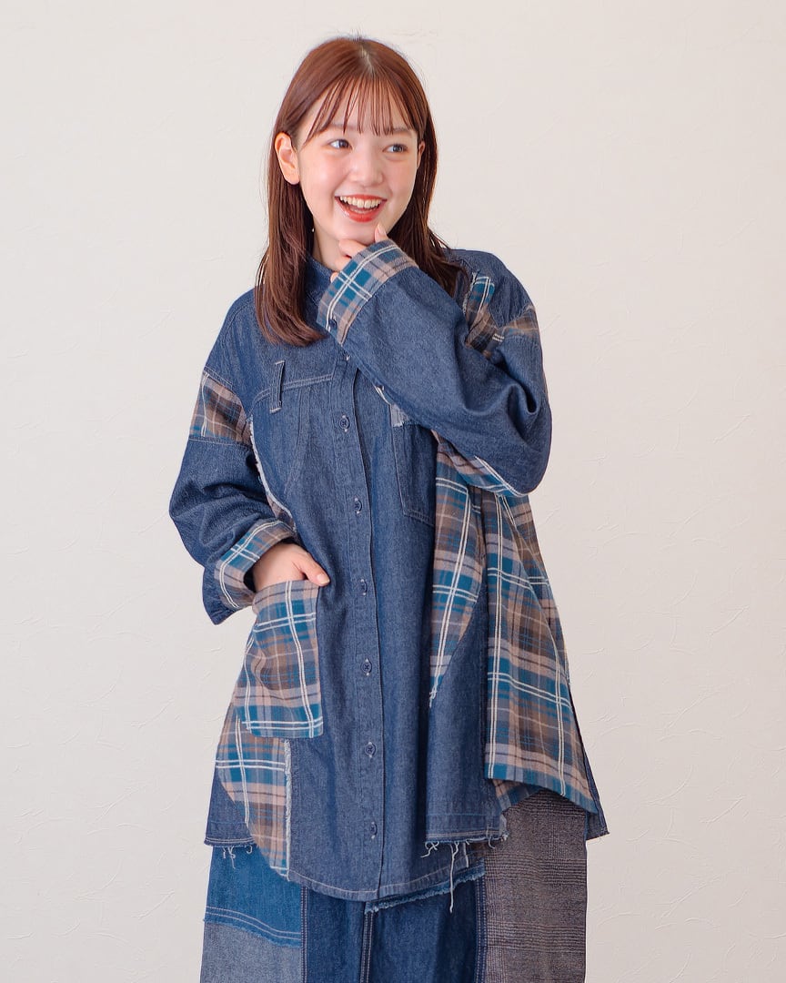 【チェック×デニム スイッチパターンシャツ】 ST-225935 Brand:ミリロピュール