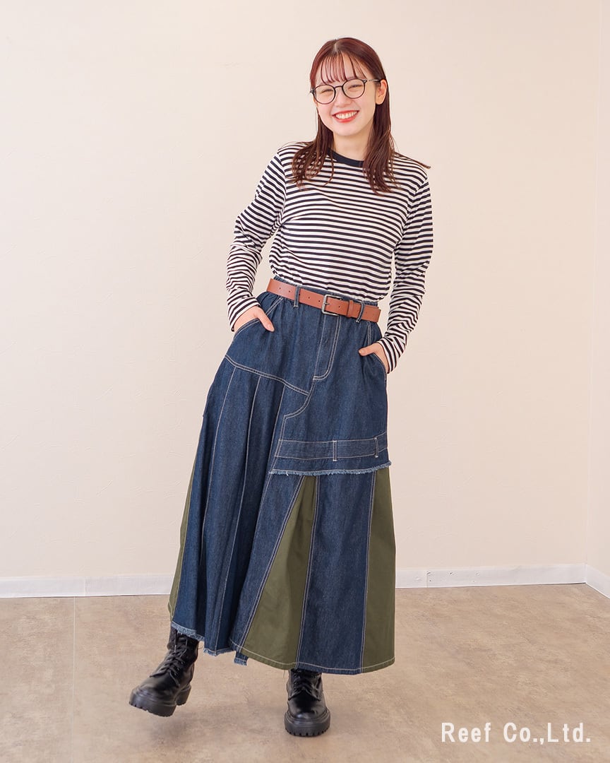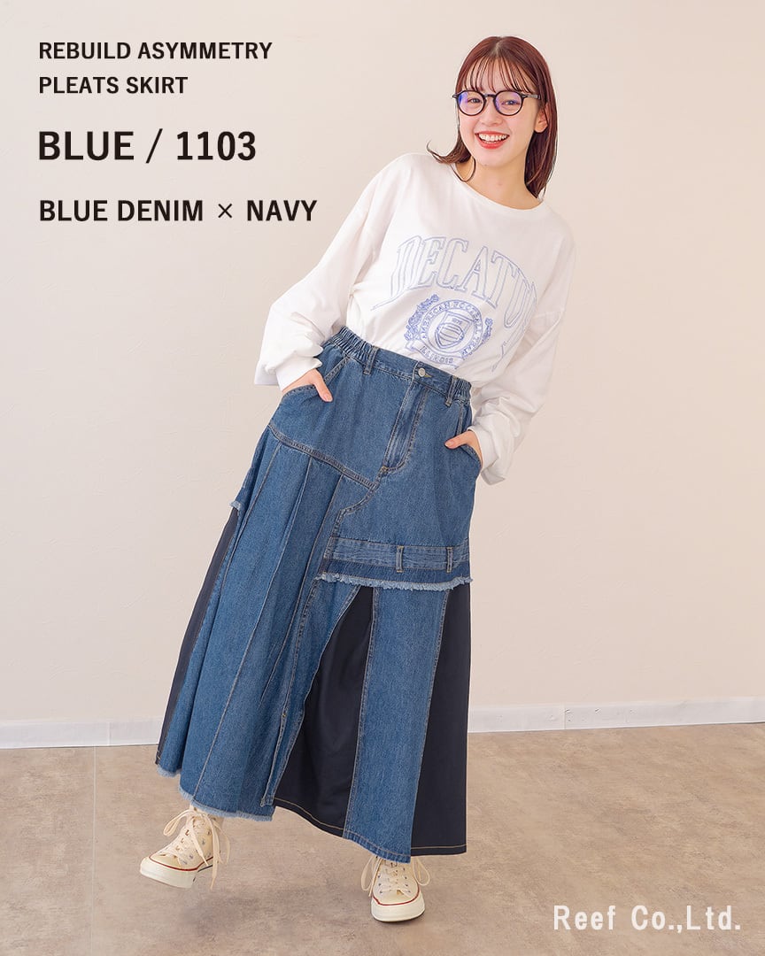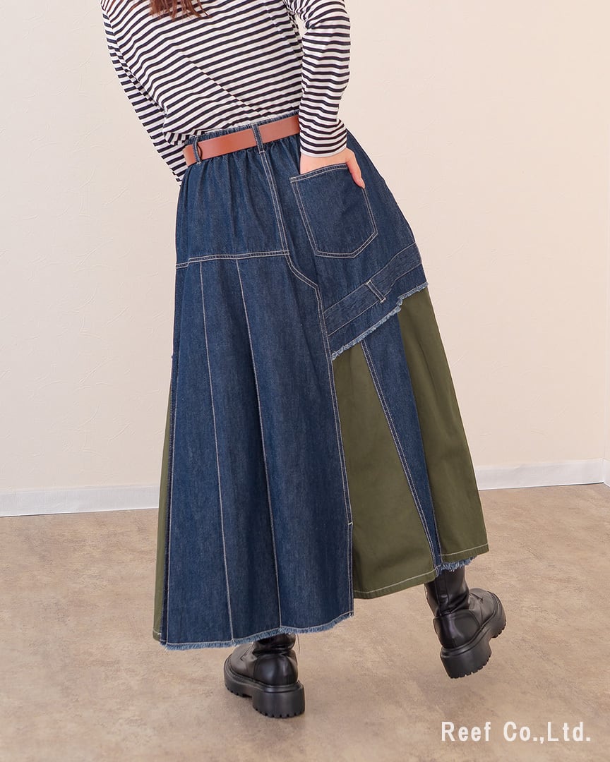 【リビルドアシメプリーツデニムスカート】 ST-225944 Brand:ミリロピュール