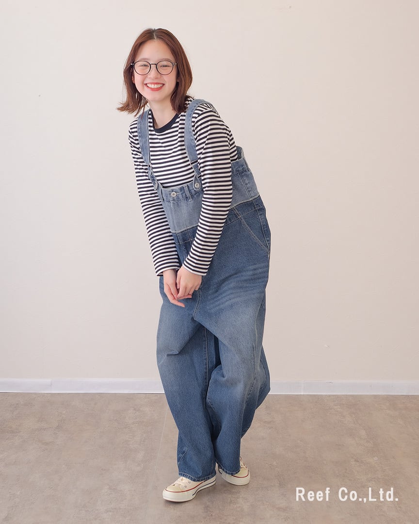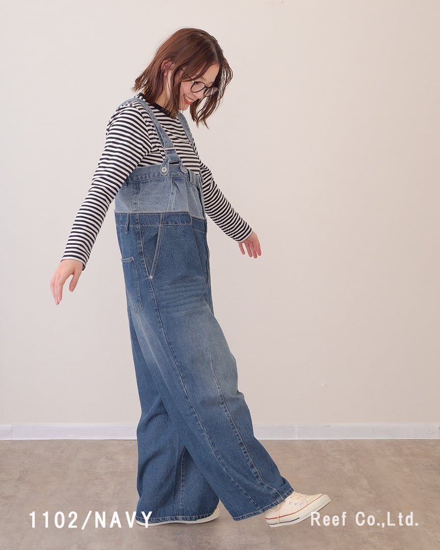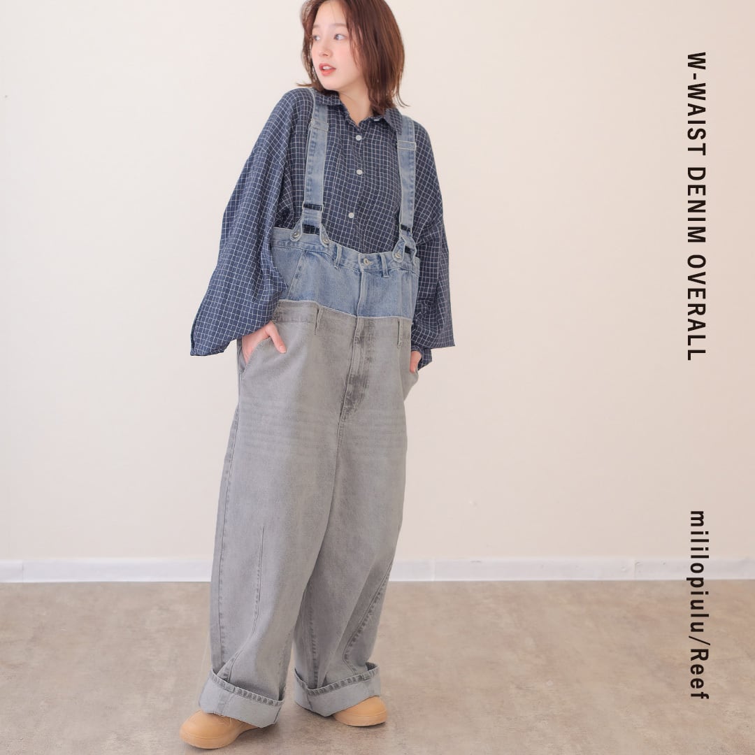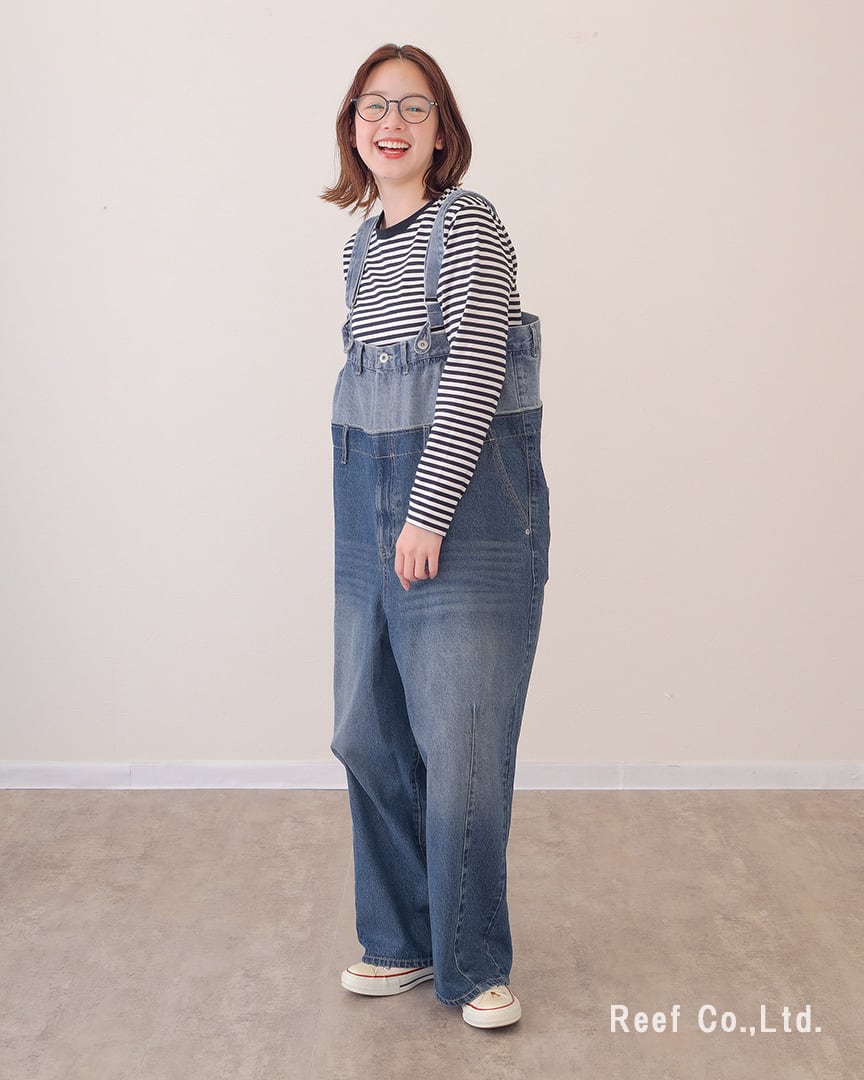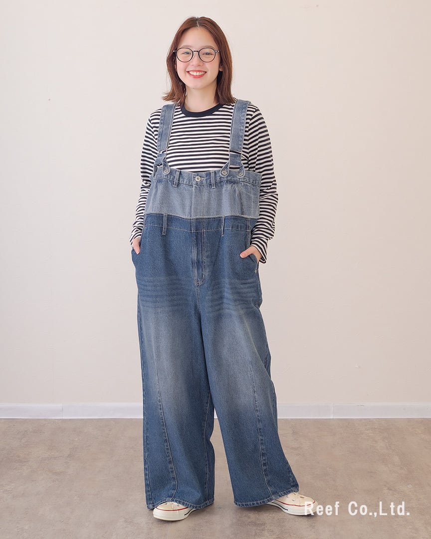 【Wウエスト デニム ロング サロペット】4パターンの着用方法 ST-226954 Brand:ミリロピュール