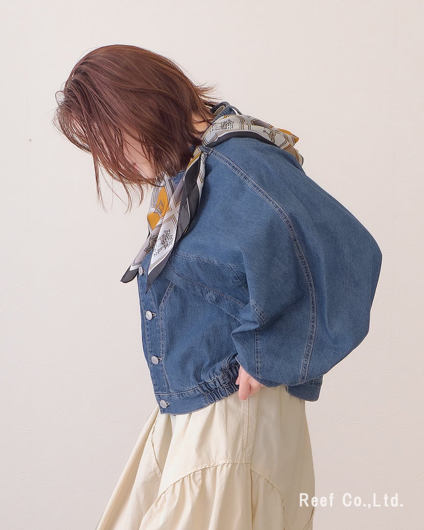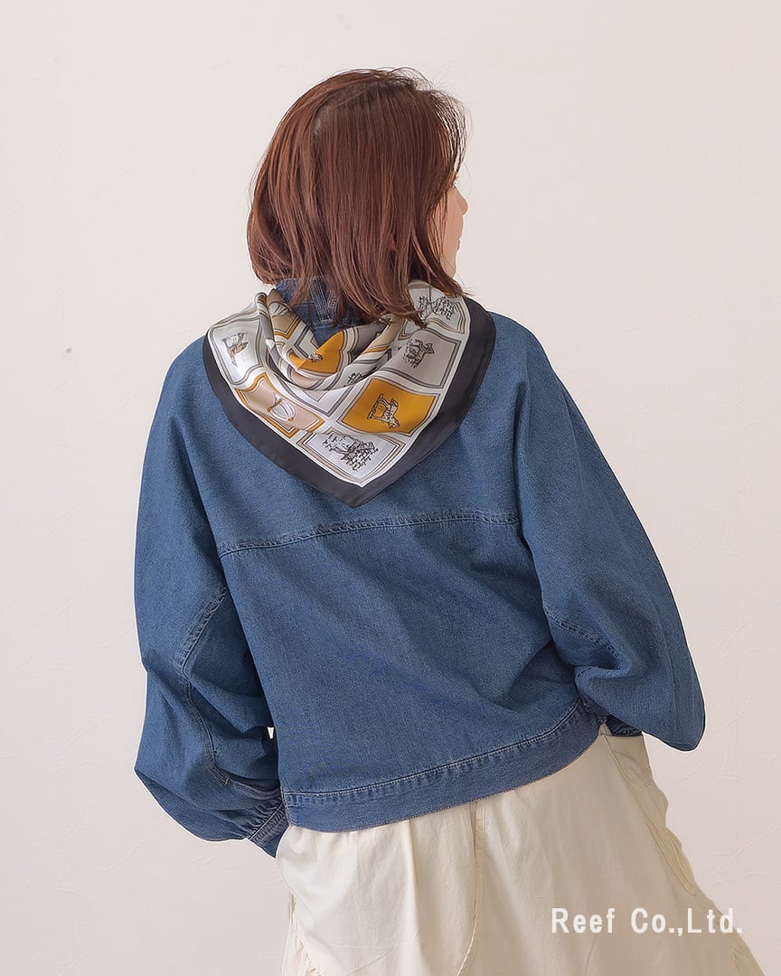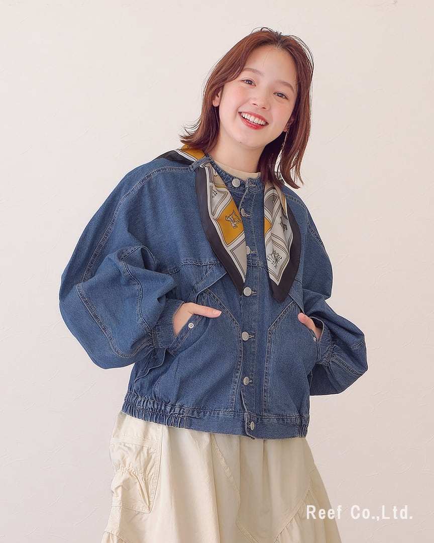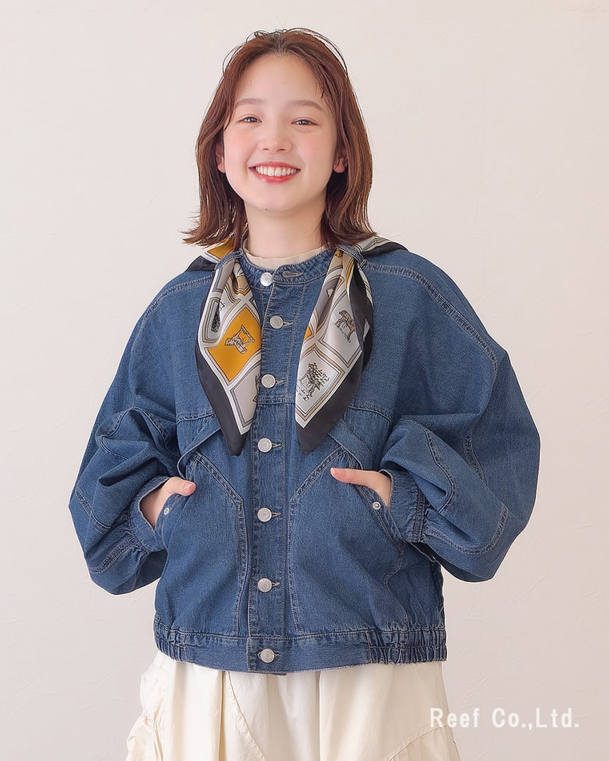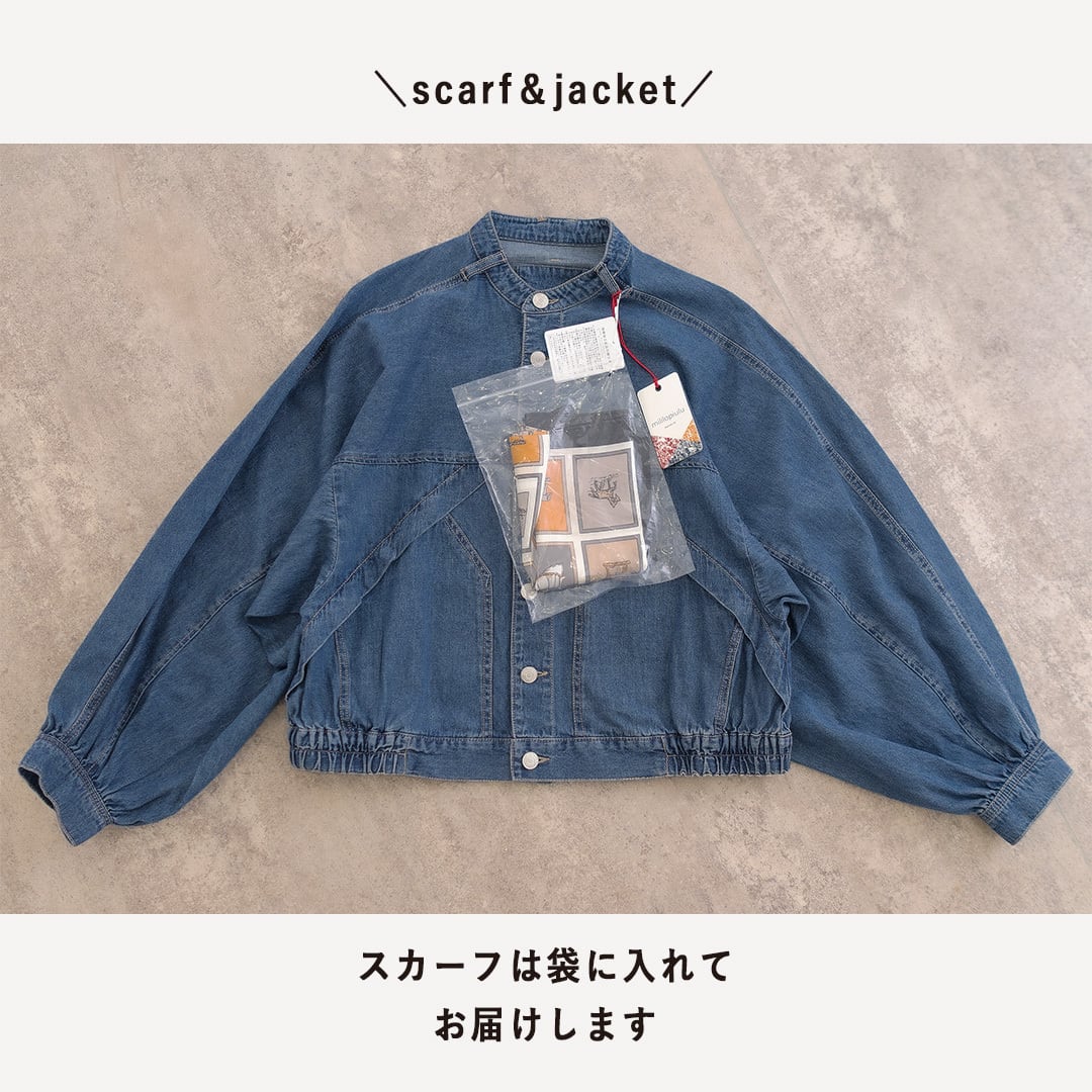 ●スカーフ付きのデニムジャケット。シーンによって取り外し可能です。