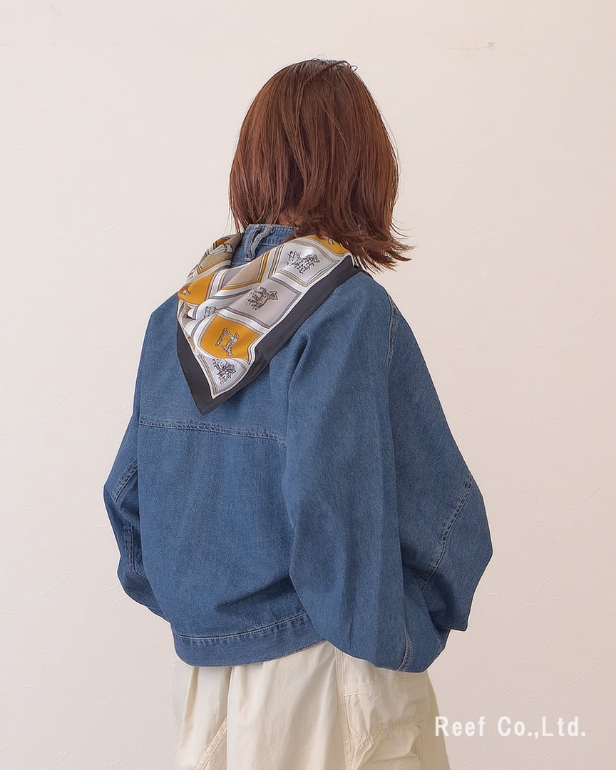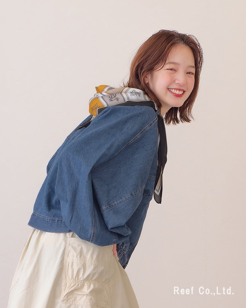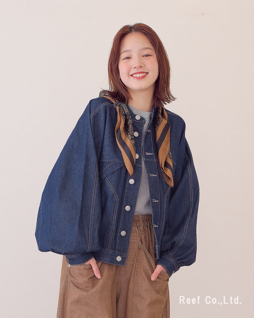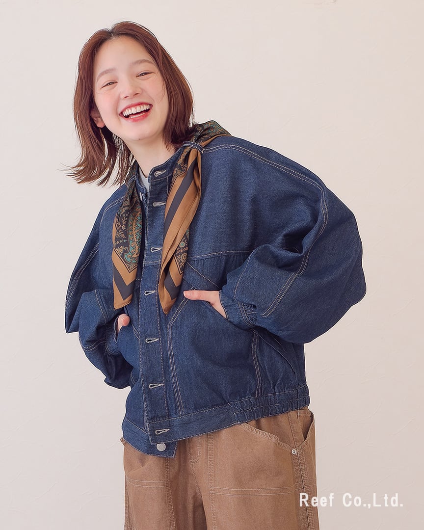 ●スカーフ付きのデニムジャケット。シーンによって取り外し可能です。