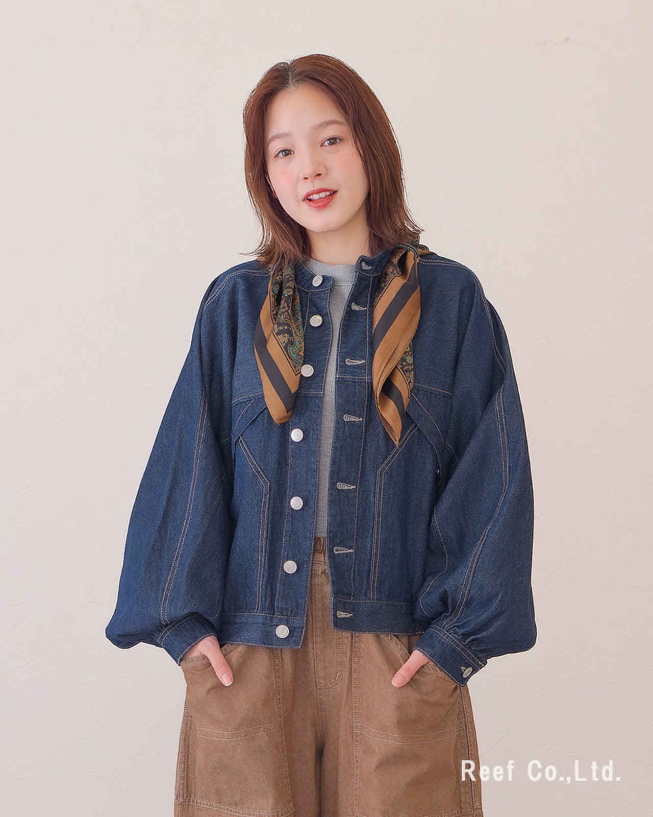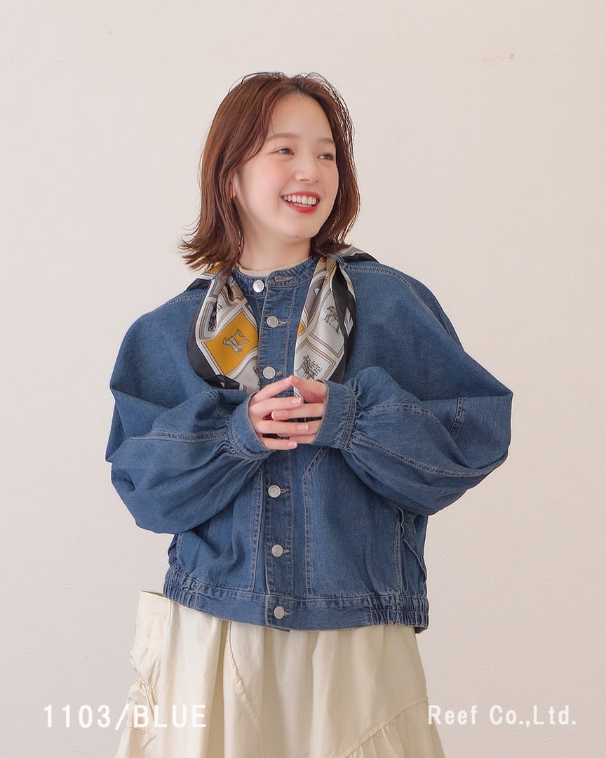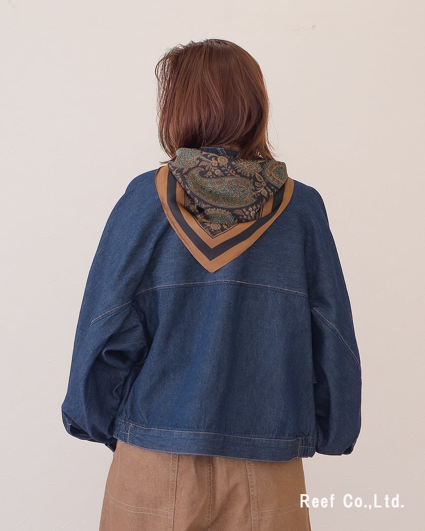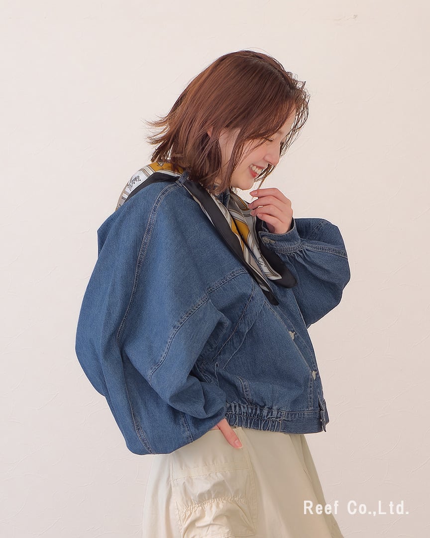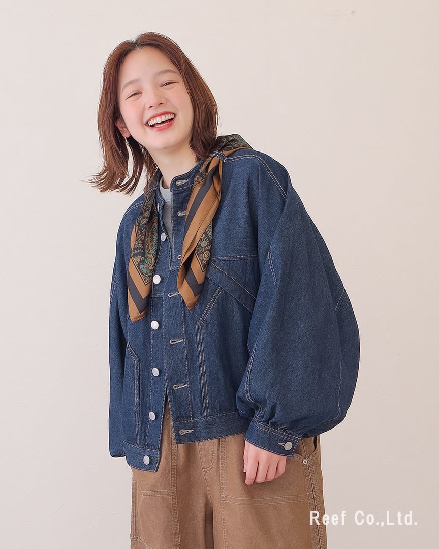 ●スカーフ付きのデニムジャケット。シーンによって取り外し可能です。