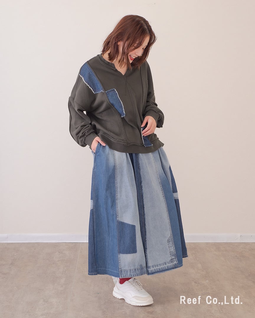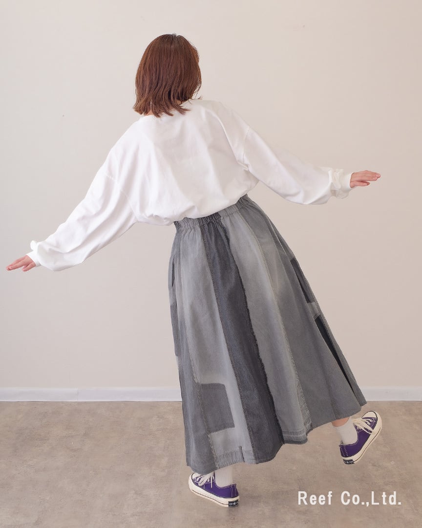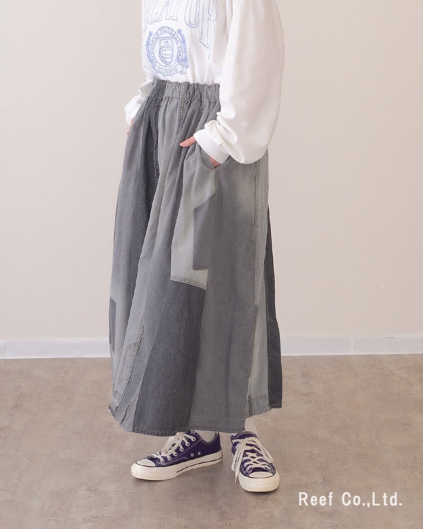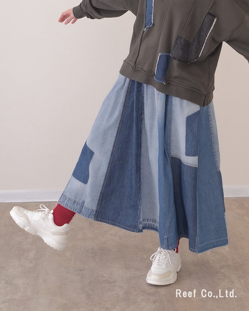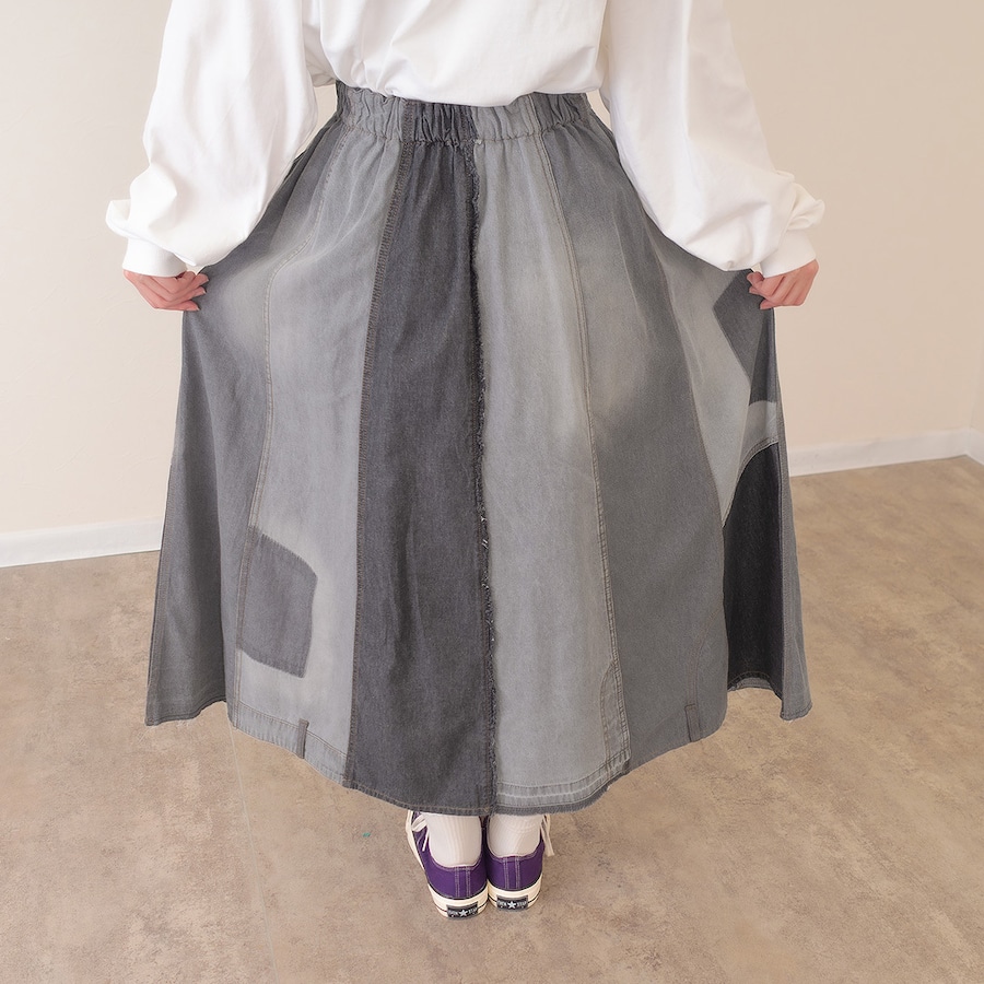 ●デニムパンツをリメイクしたようなパネルスカートです。