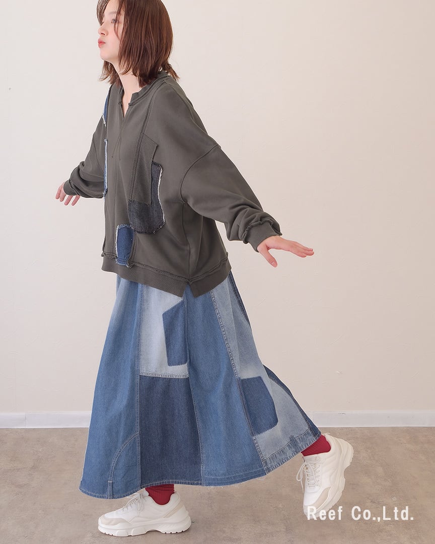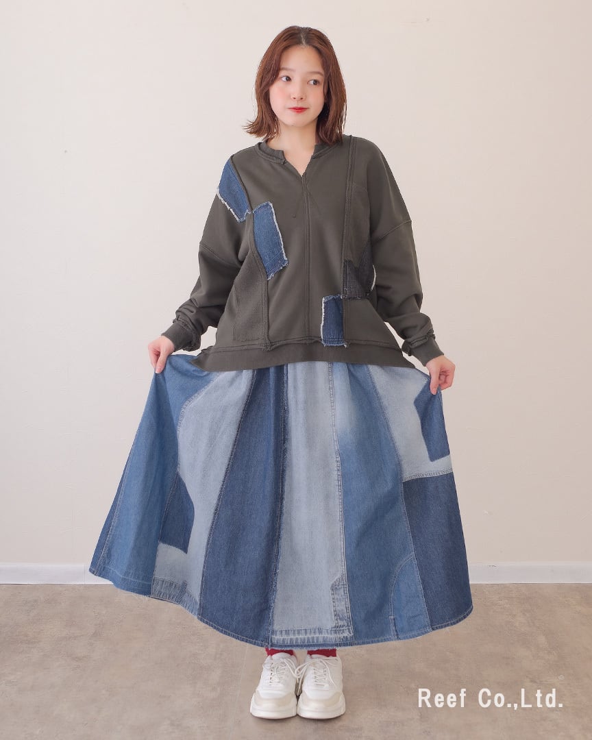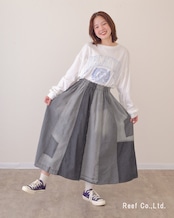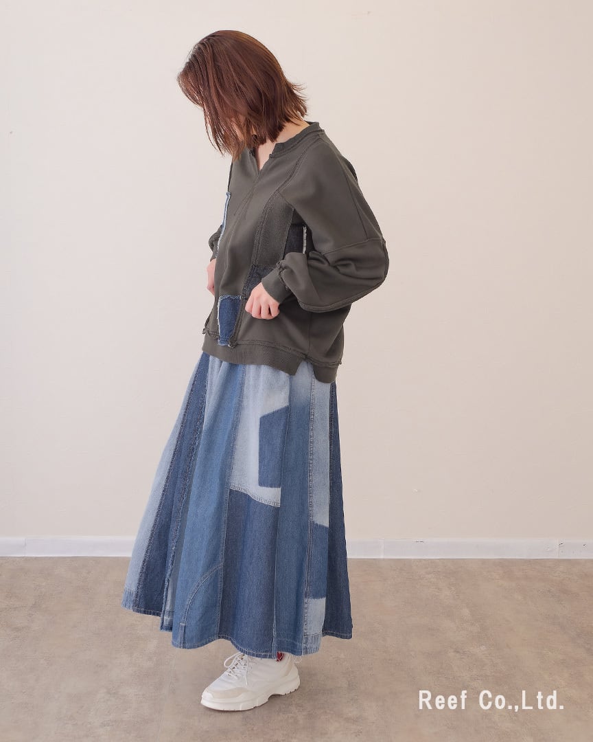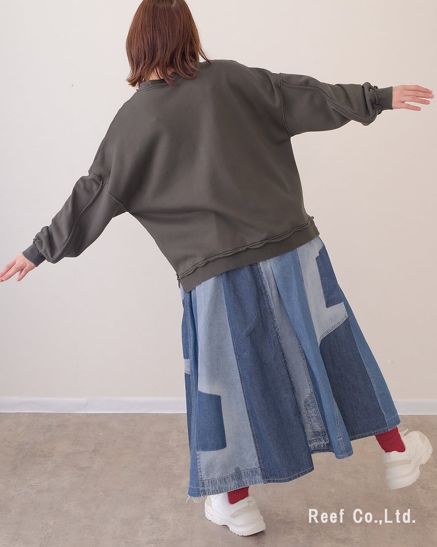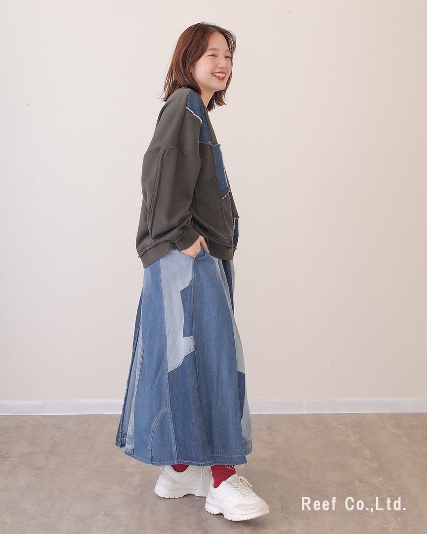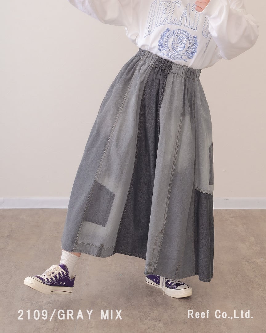 ●デニムパンツをリメイクしたようなパネルスカートです。