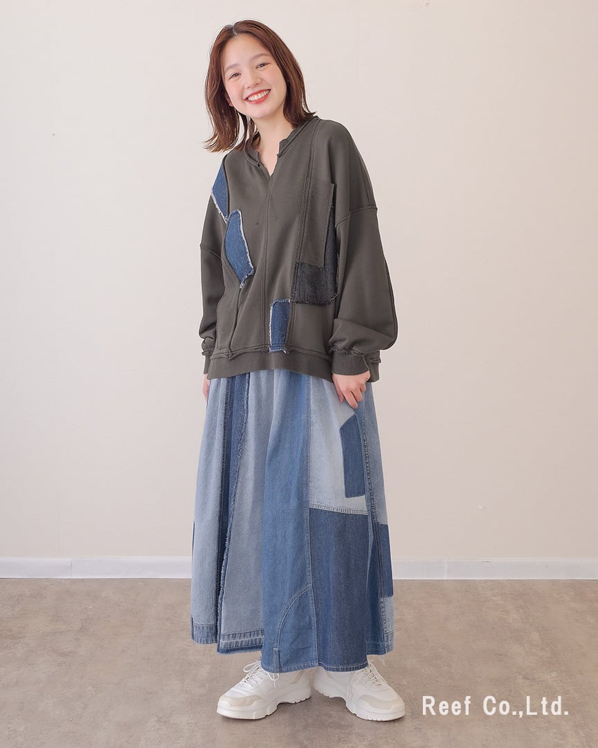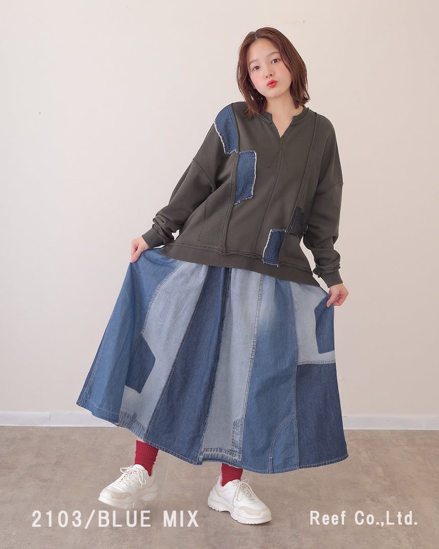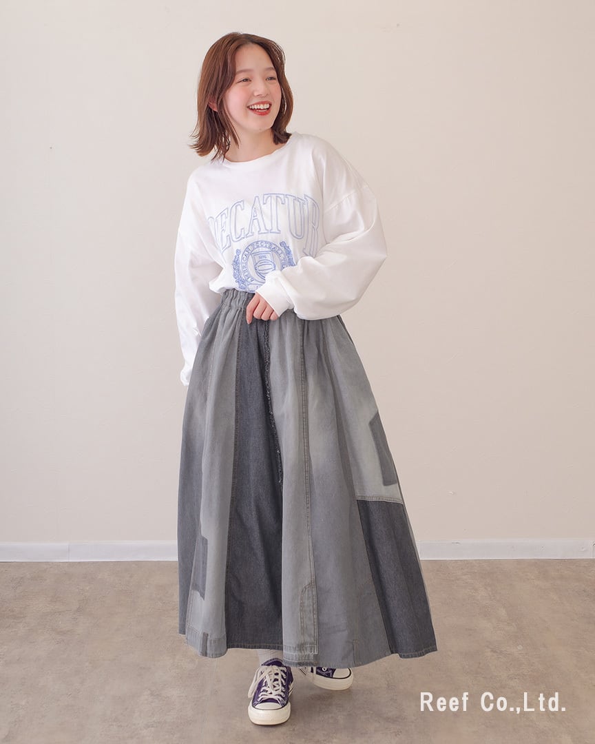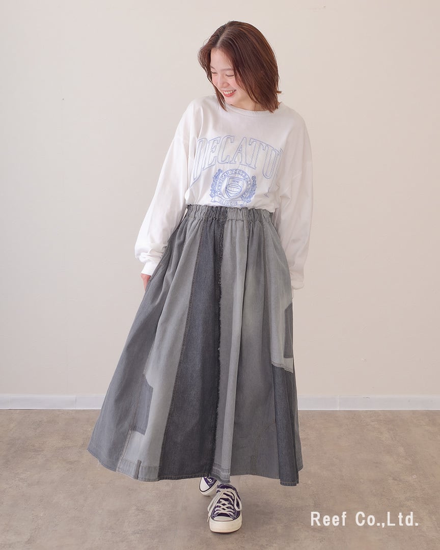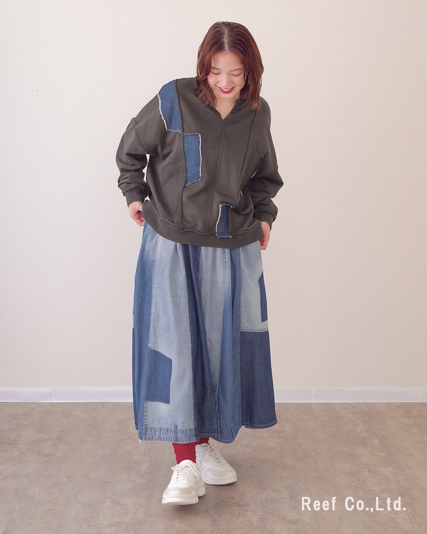 ●デニムパンツをリメイクしたようなパネルスカートです。