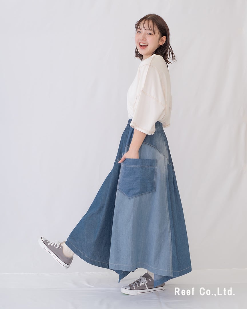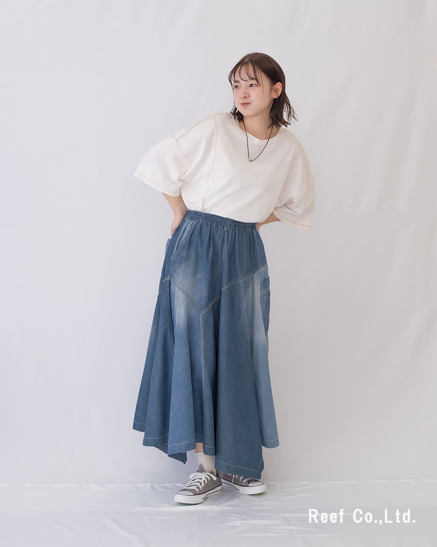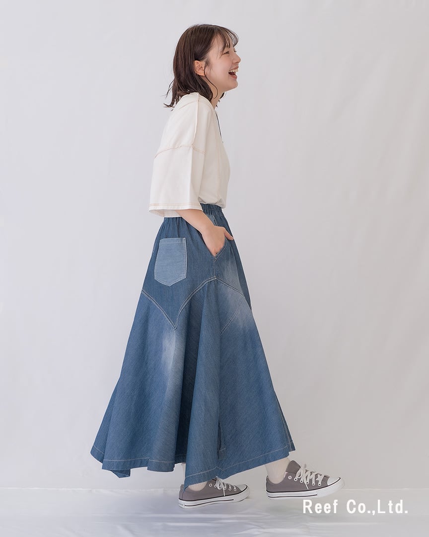 \贅沢な切替が見せる。歩く姿までドラマチックな大人のイレヘムスカート/