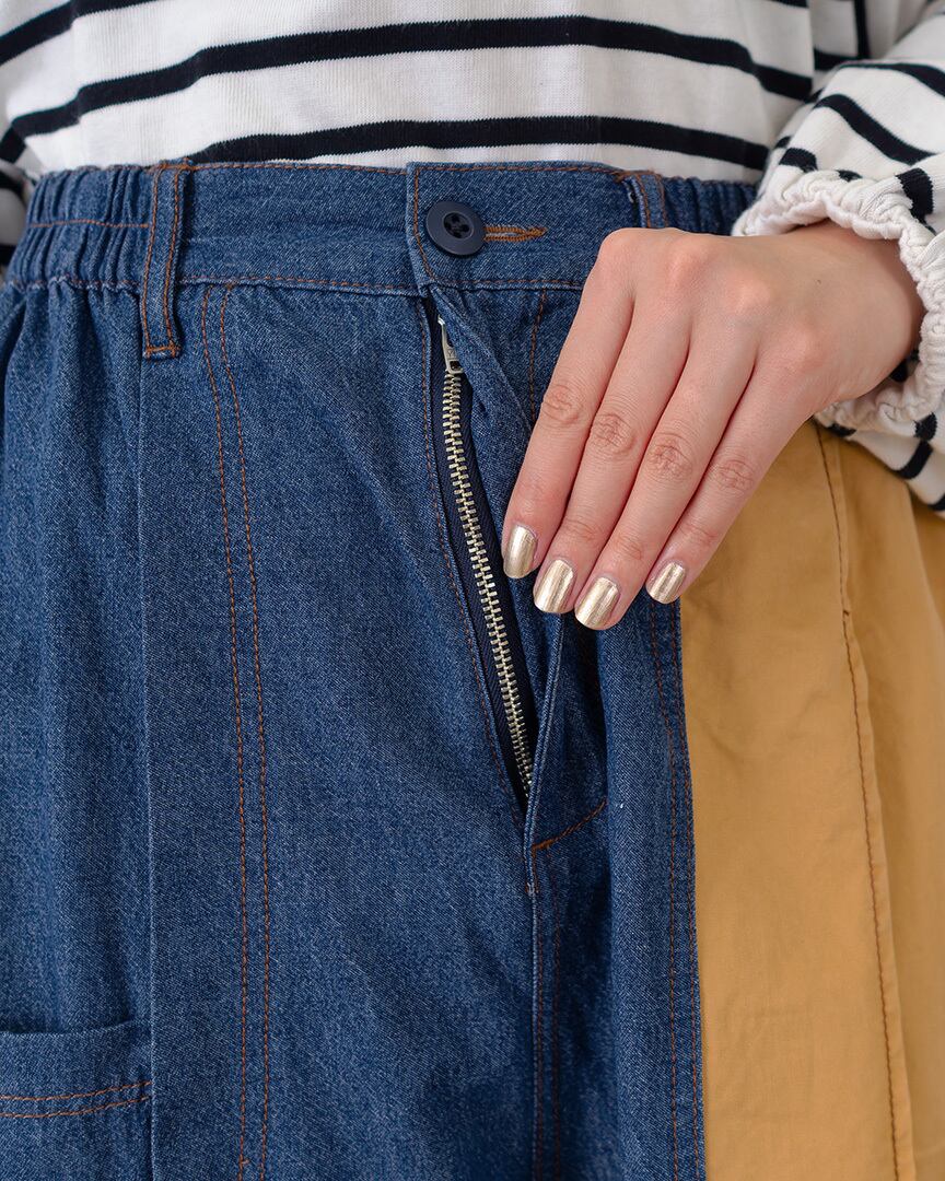 アシメカラープリーツデニムパンツ ST-224805