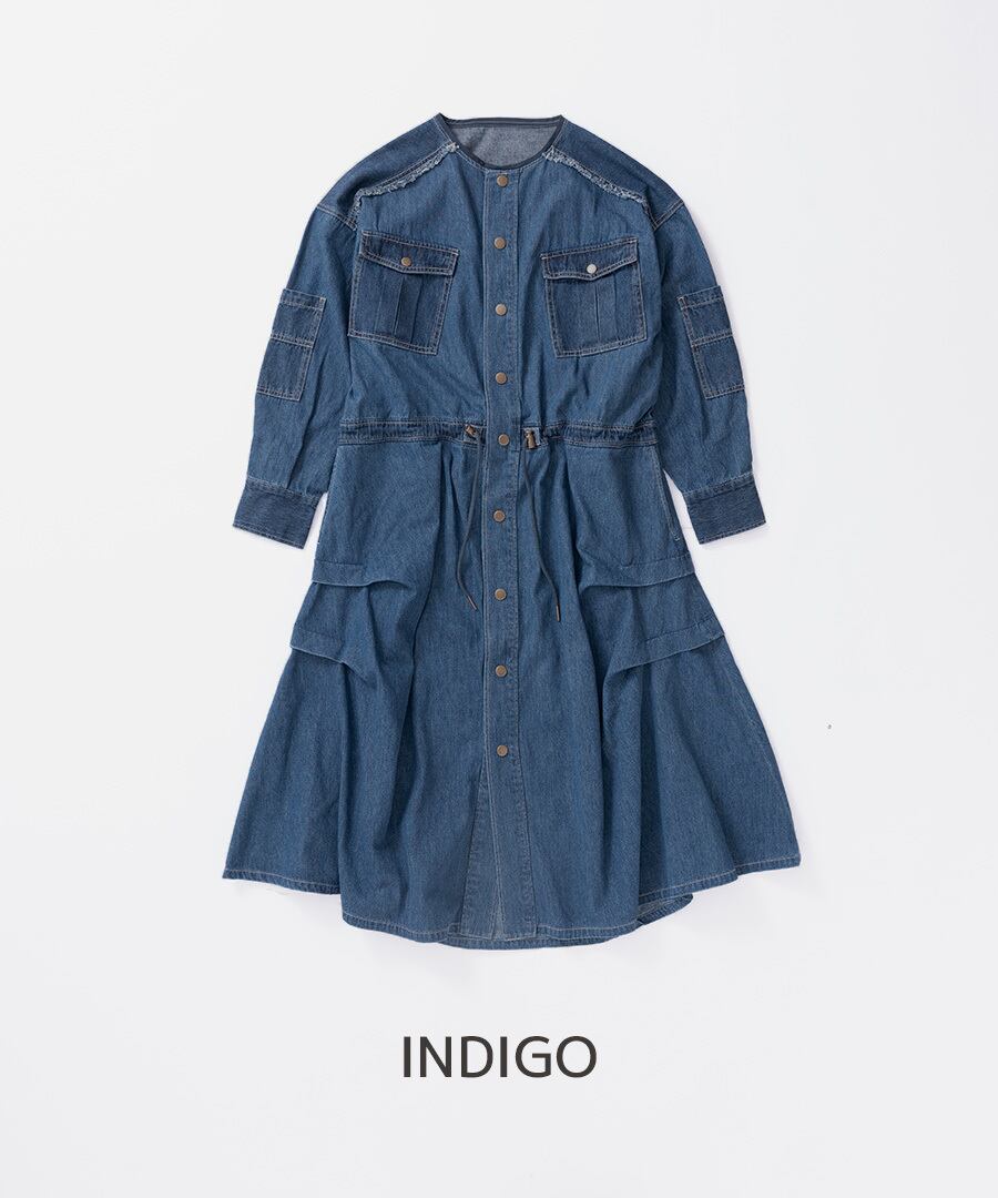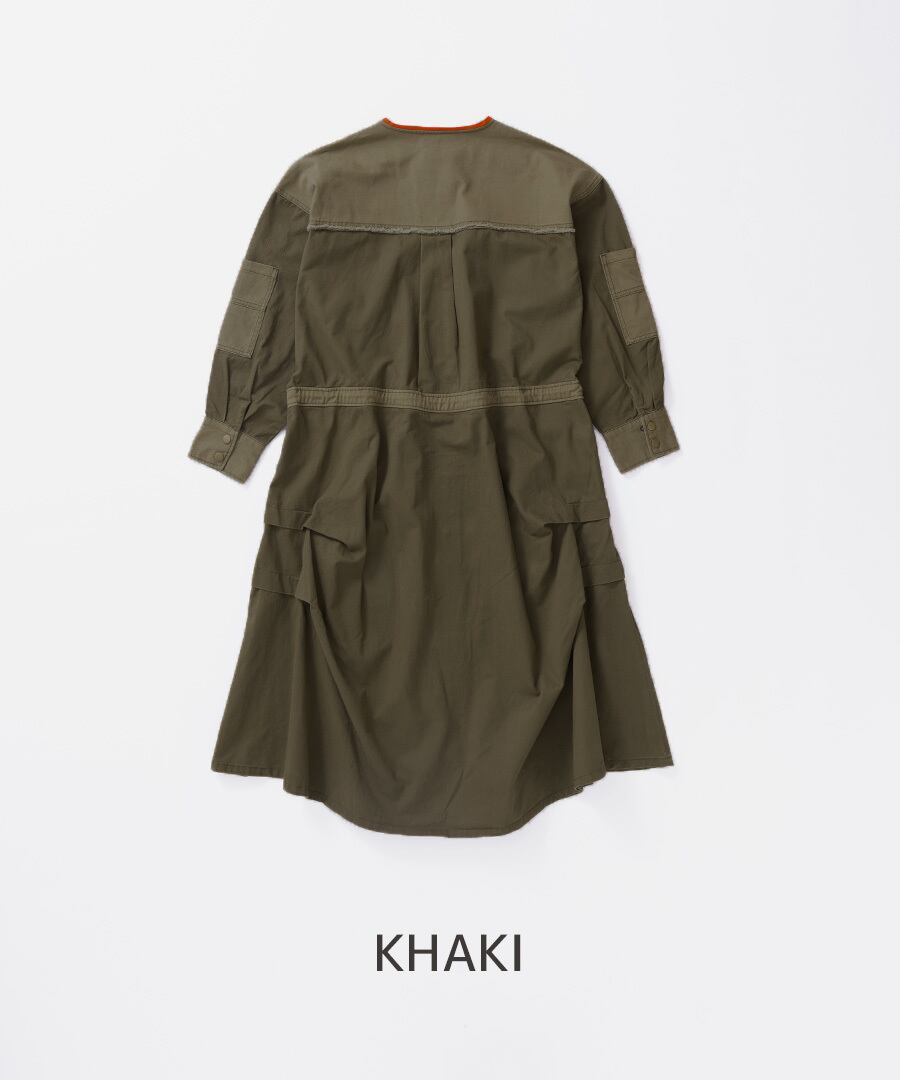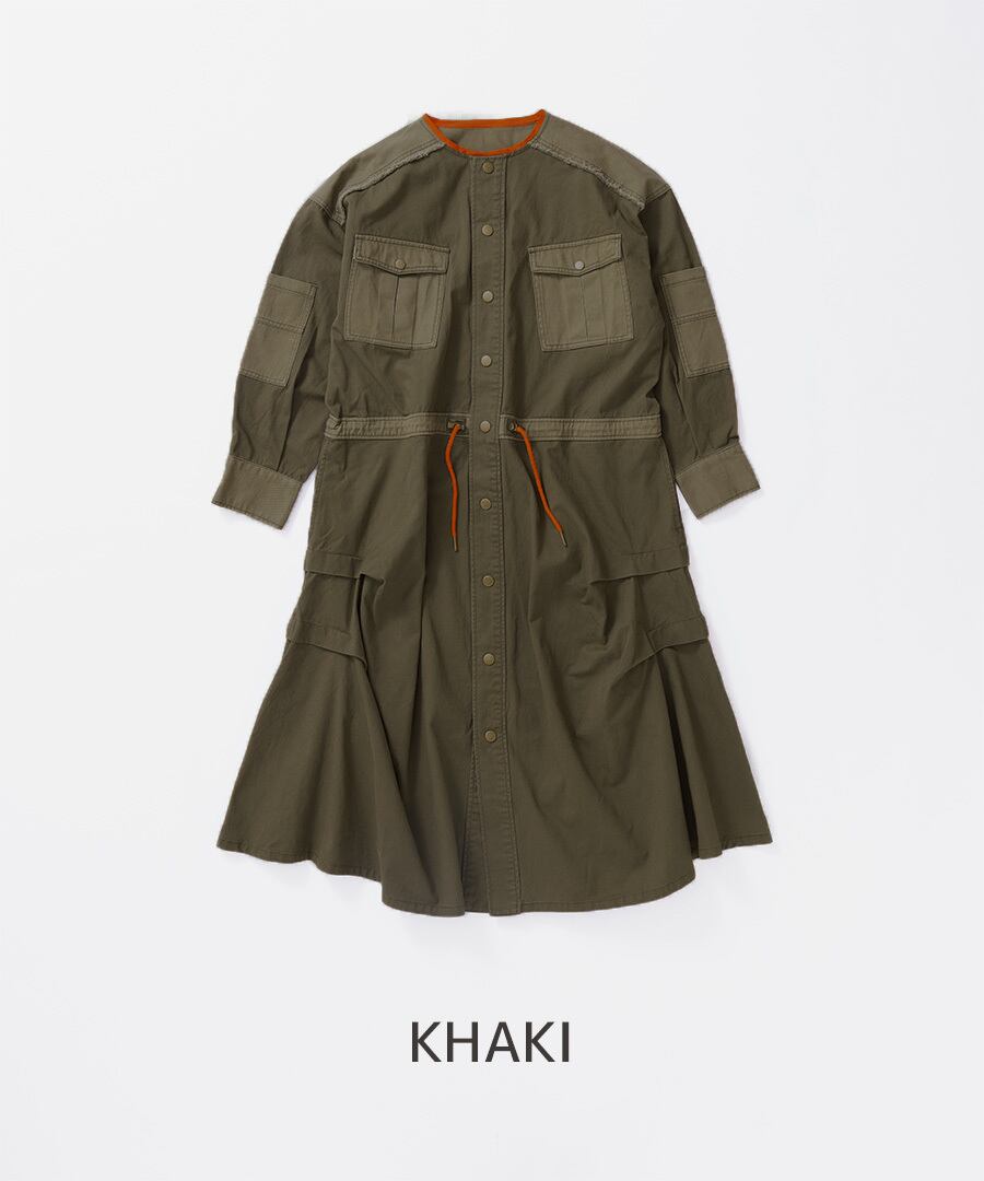 \コートみたいにも着れるワンピース。ミリタリーをかわいく着こなせる。/
