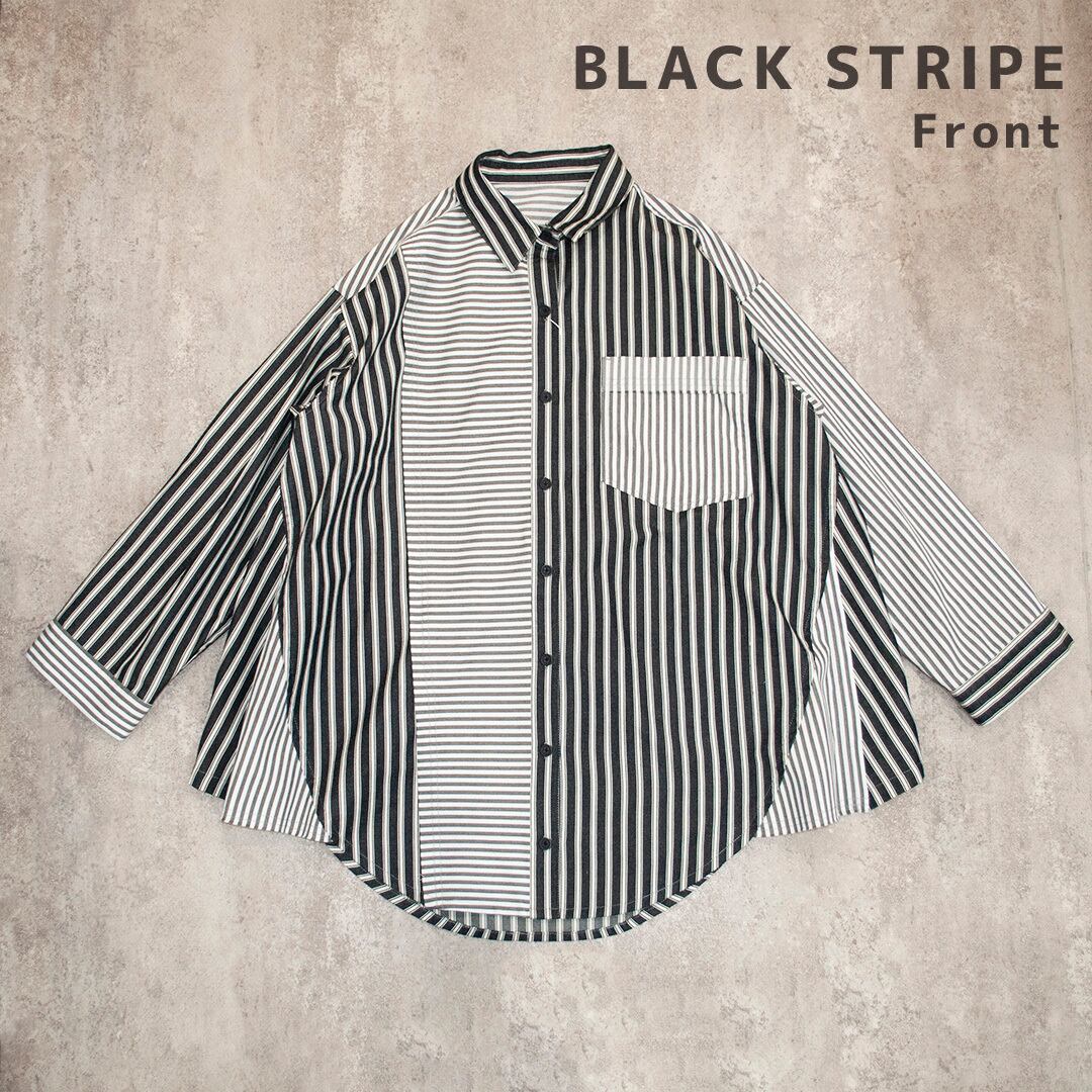 \ストライプ×ボーダーのオーバーシャツ!/