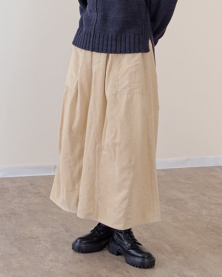 ●コール天を使用した暖かみのあるスカートです。