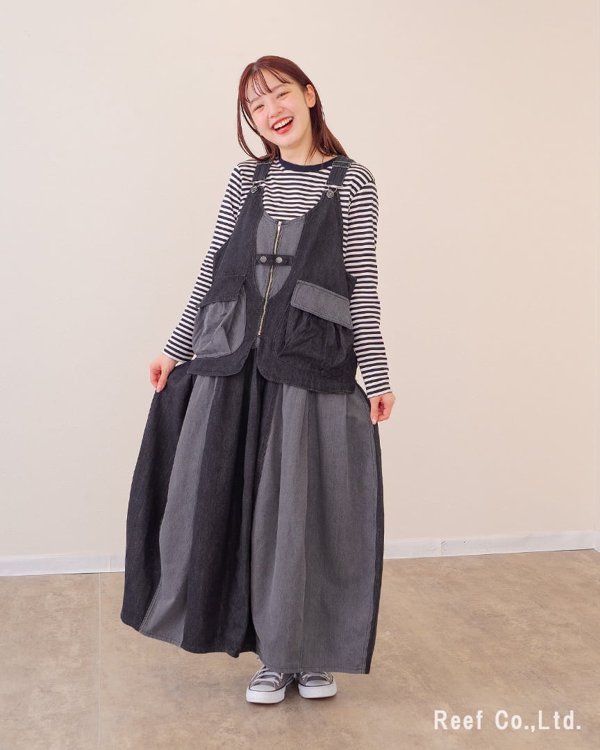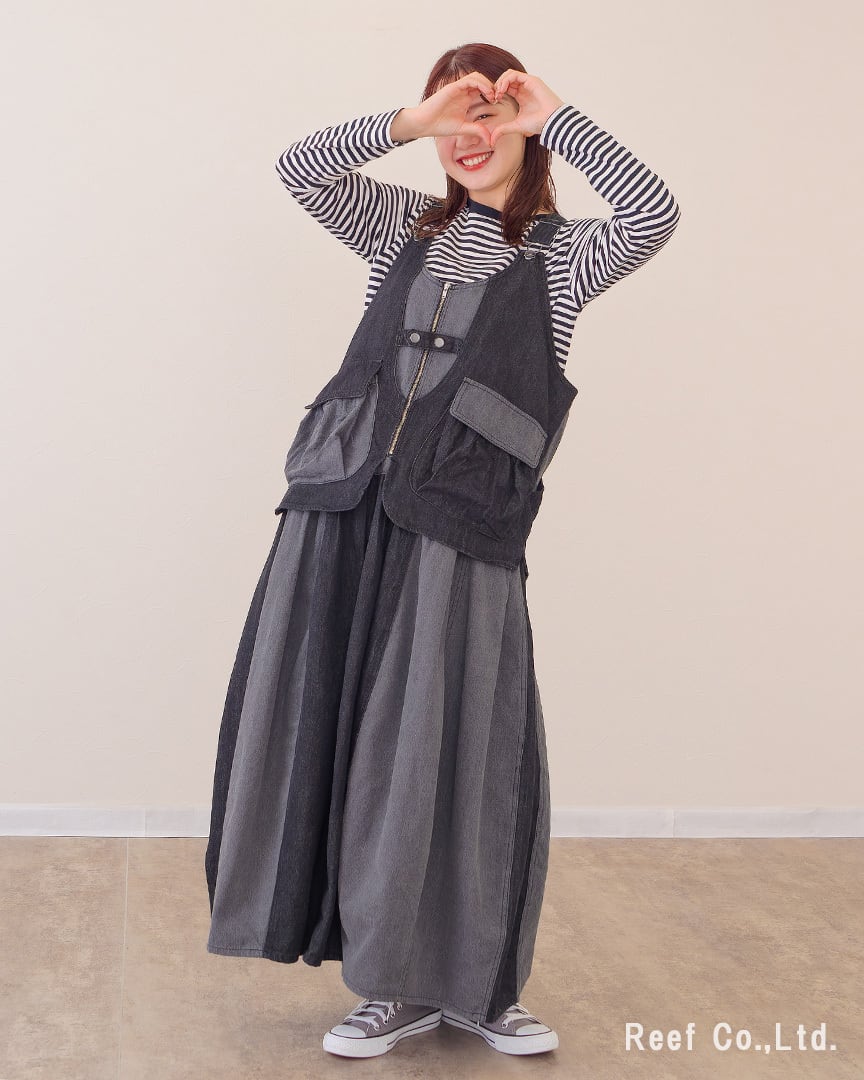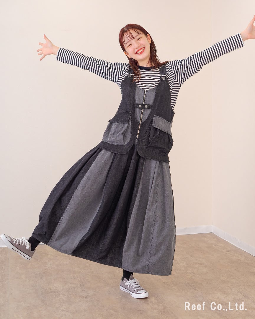 【Reef's popular items】レイヤード風切替バルーンデニムジャンスカ ST-221574 mililopiulu