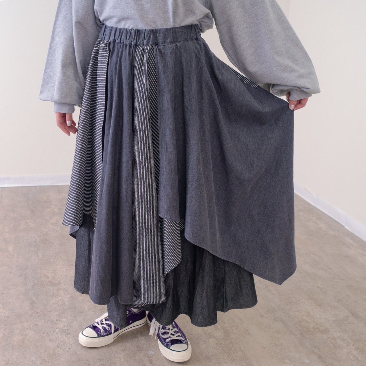 デニム×ヒッコリーランダムヘムスカート ST-225878