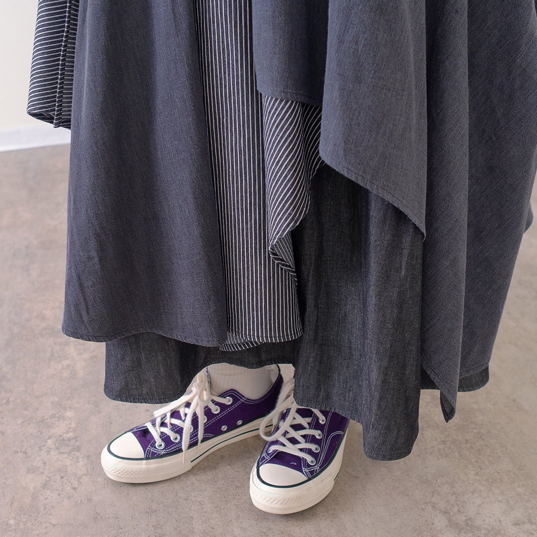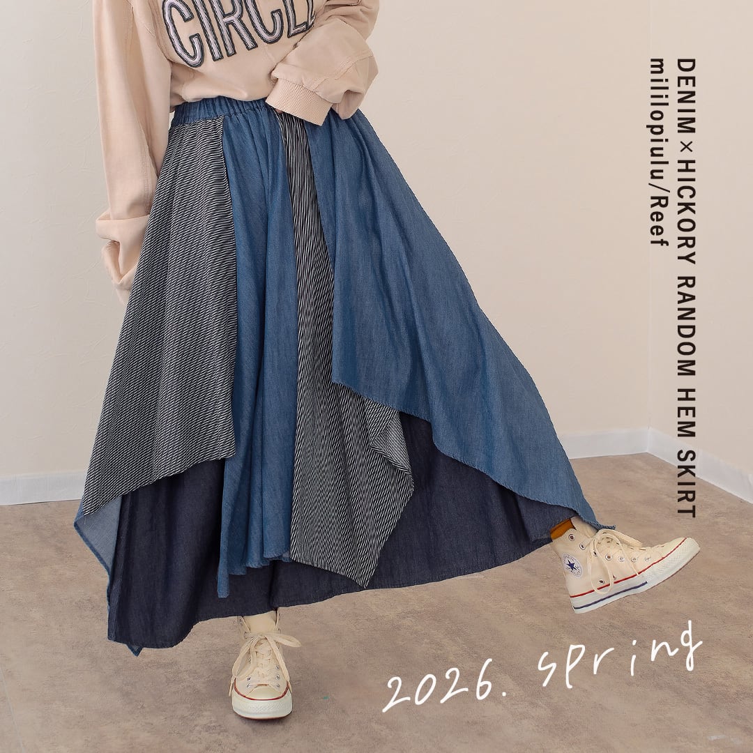 ●Reefで人気のランダムヘムスカート。今季はヒッコリーとの組み合わせで登場です。